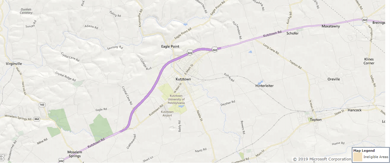 See the Map Legend in the lower right corner. There are no areas around the immediate Kutztown region which are zoned as Ineligible by the USDA.